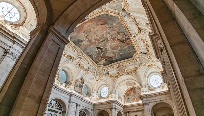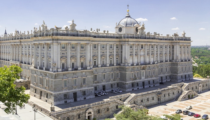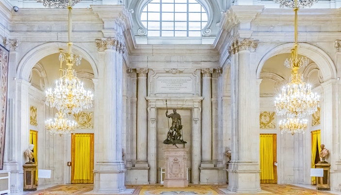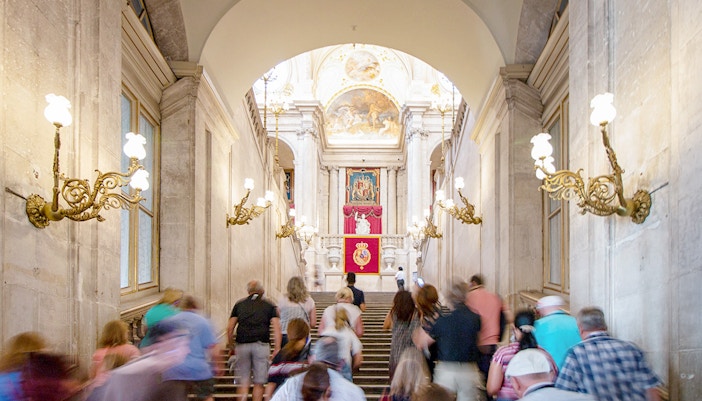 La plaza de la Armería es un lugar ideal para hacer fotos del Palacio Real, y es el punto de partida de tu visita, ya que se accede al palacio desde esta plaza. Además, separa el Palacio Real de Madrid de la catedral de la Almudena. Te recomendamos que empieces la visita por la plaza, ya que así podrás disfrutar de la magnífica decoración real mientras te adentras en el palacio.